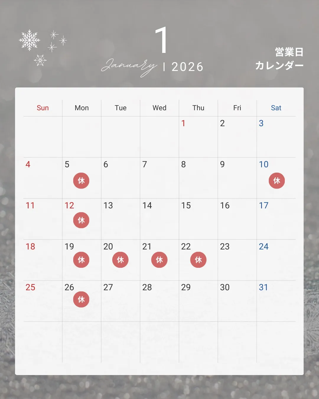 📅 2026年1月の営業スケジュールは画像をご確認ください。